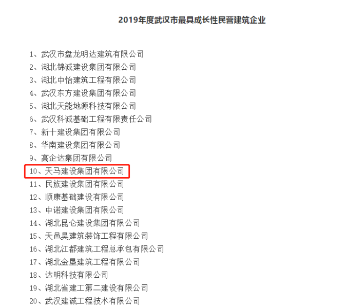 10月21日,2019年度武漢市最具成長性民營建筑企業(yè)榜單出爐!這是集團(tuán)第三次獲此殊榮!
