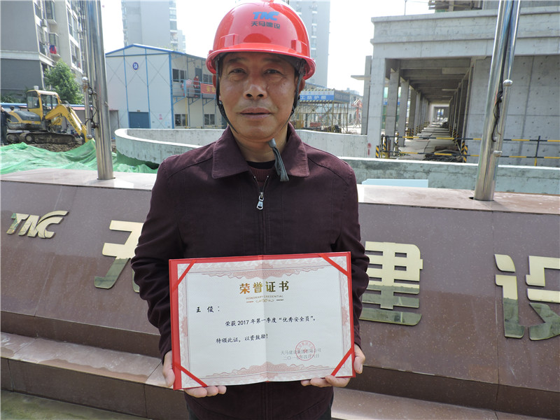 天馬建設(shè)集團2017年第一季度安全生產(chǎn)優(yōu)秀安全員:(居住項目)鸚鵡村還建地塊項目安全員——王俊