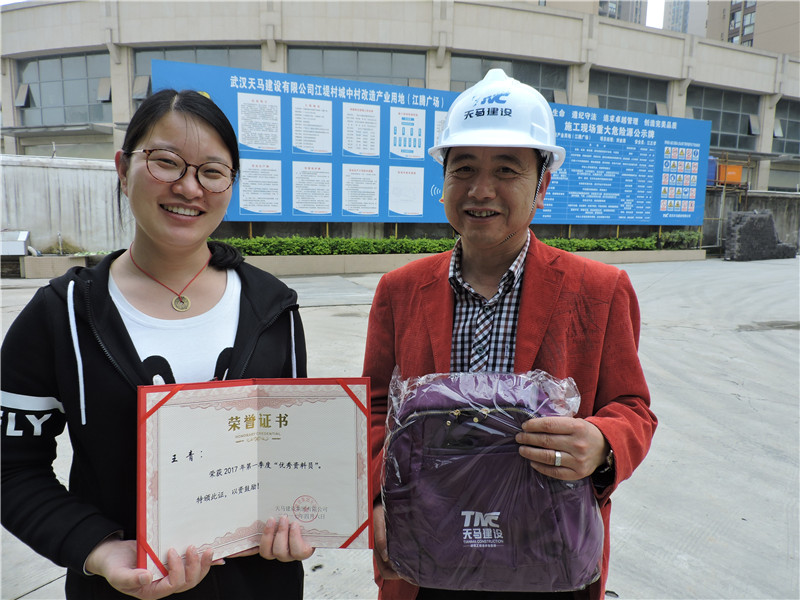 天馬建設(shè)集團2017年第一季度安全生產(chǎn)優(yōu)秀資料員:江騰廣場項目資料員——王青