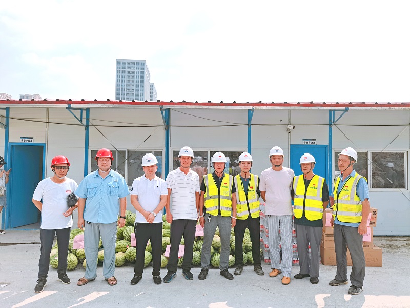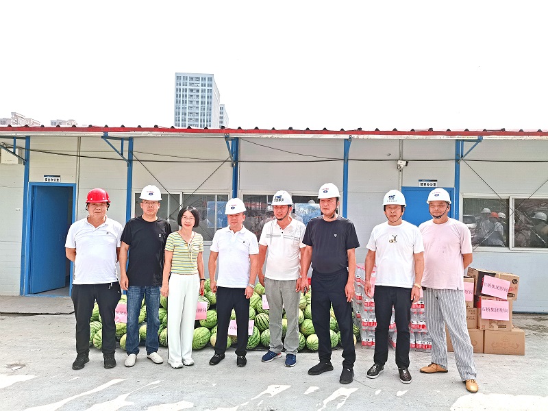 驕陽似火,熱浪滾滾,給在戶外工作的項(xiàng)目施工人員帶來了嚴(yán)峻“烤”驗(yàn)。為做好暑期施工安全生產(chǎn)工作,確保項(xiàng)目施工人員安全度夏,7月30日,在集團(tuán)監(jiān)事會主席、工程項(xiàng)目總包負(fù)責(zé)人張幼明的陪同下,武漢石橋集團(tuán)有限公司董事長李鴻斌、紀(jì)委書記姚海瓊、建設(shè)單位項(xiàng)目負(fù)責(zé)人胡元杰等一行領(lǐng)導(dǎo)來到集團(tuán)在建工地(石橋村城中村改造還建H4+TJ1西地塊)項(xiàng)目部開展了“夏日送清涼”活動,為堅守在高溫下的一線工友送去了“清涼”和建設(shè)方的關(guān)懷。