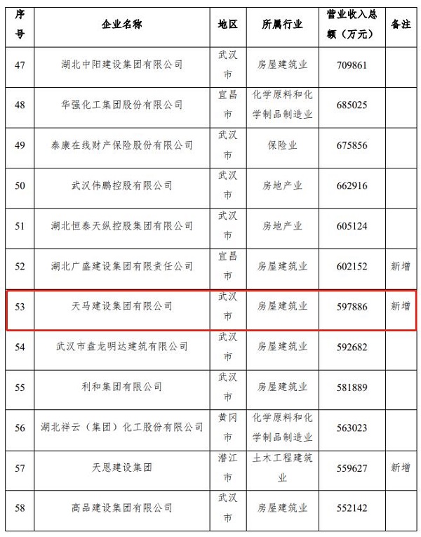 該排序榜由相關市直部門共同組織,以2020年企業(yè)營業(yè)收入總額為依據。集團自2018年開始連續(xù)4年入圍湖北民營企業(yè)百強榜單。這對于提振企業(yè)的發(fā)展信心,凝聚全體天馬人創(chuàng)新創(chuàng)業(yè)的干勁,起到非常好的促進作用。