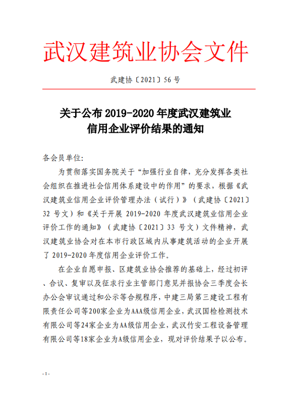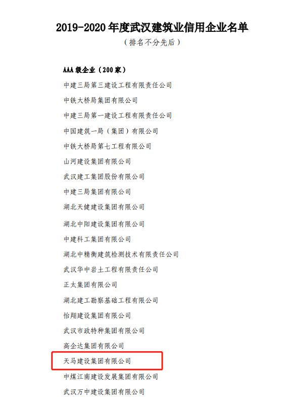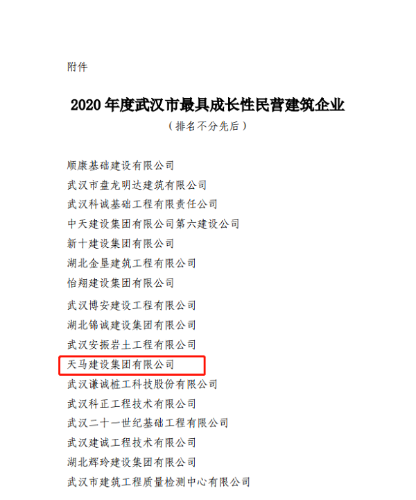 近日,天馬建設(shè)再度榮獲2020年度武漢市最具成長(zhǎng)性企業(yè)和武漢建筑AAA級(jí)信用企業(yè)兩項(xiàng)殊榮。