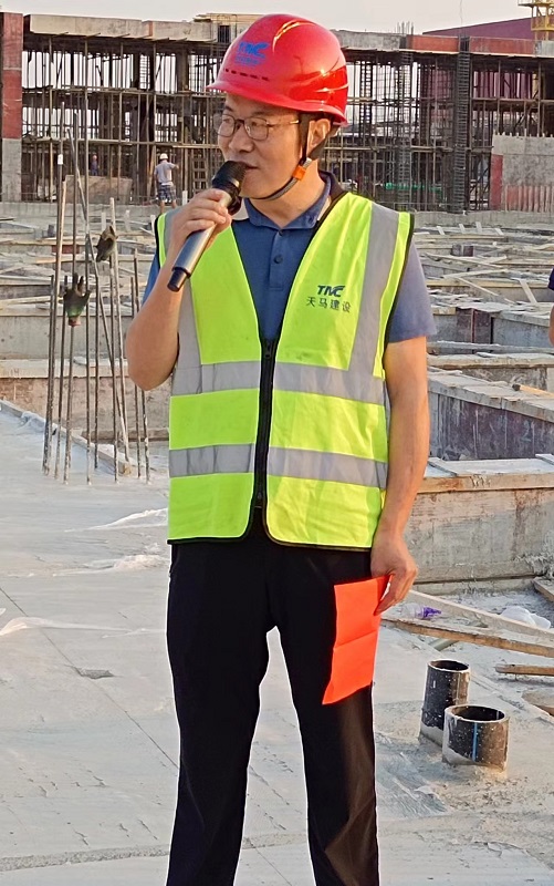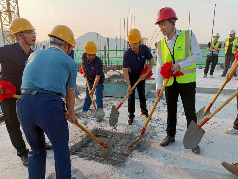 中新開維現(xiàn)代牧業(yè)項目位于鄂州市碧石渡鎮(zhèn)虹橋村,總投資40億元,建設(shè)兩棟26層高養(yǎng)殖大樓,總建筑面積80萬平方米,二號生產(chǎn)大樓總建筑面積約40萬平方米,總層高94.2米,待兩棟大樓全部順利投產(chǎn)后,可實現(xiàn)年出欄生豬120萬頭。該項目將成為中國生豬養(yǎng)殖行業(yè)勞動效率、防疫等級、環(huán)保低碳、人均薪資最高和綜合成本最低的現(xiàn)代化生豬養(yǎng)殖牧場之一。項目自2021年8月1日開工建設(shè)以來,項目管理人員合理統(tǒng)籌人材機(jī),戰(zhàn)高溫、保工期、保投產(chǎn)、保交叉作業(yè)安全,做到不間斷施工,人停機(jī)械不停。生產(chǎn)大樓的1-2層為功能設(shè)施用房,3-26層為養(yǎng)殖標(biāo)準(zhǔn)層。養(yǎng)殖標(biāo)準(zhǔn)層采用大平層大單元設(shè)計,實行每層一條龍生產(chǎn)模式,實現(xiàn)豬的同層流轉(zhuǎn)。高層養(yǎng)豬是一系列創(chuàng)新的集成,突破關(guān)鍵技術(shù),實現(xiàn)多項世界首創(chuàng),以規(guī)?;F(xiàn)代化、自動化、智能化、環(huán)?;⒌吞蓟陌l(fā)展理念促進(jìn)生豬養(yǎng)殖加快轉(zhuǎn)型升級,以創(chuàng)新引領(lǐng)生豬產(chǎn)業(yè)高質(zhì)量發(fā)展。 在封頂儀式現(xiàn)場,總經(jīng)理高昌盛致辭表示,今天是中華人民共和國成立73周年,在這個大喜的日子里,我們迎來了中新開維現(xiàn)代牧業(yè)二號生產(chǎn)大樓的喜封金頂,這是天馬建設(shè)集團(tuán)有限公司與湖北中新開維現(xiàn)代牧業(yè)有限公司長期合作的結(jié)晶。自項目建設(shè)以來,我們嚴(yán)格做到了四個確保:保質(zhì)量、保安全、保進(jìn)度、保項目的和諧安定,如期完成建設(shè)任務(wù)。項目的順利封頂,標(biāo)志著工程建設(shè)取得了階段性的勝利,也為下一步工作開創(chuàng)了良好局面,我們將繼續(xù)秉承“客戶至上、質(zhì)量第一、安全第一”的經(jīng)營理念,堅持“逢建必優(yōu)”的建設(shè)宗旨,繼續(xù)保持與中新開維的深度合作,以一流的管理、一流的質(zhì)量、一流的信譽(yù),建設(shè)一流的工程,以回報中新開維和諸葛董事長的信任與支持。