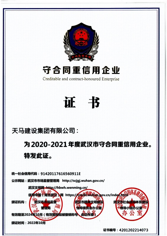 近日,湖北省市場監(jiān)督管理局、武漢市市場監(jiān)管局公布了2020-2021年度“守合同重信用”企業(yè)名單。我司再次獲評“湖北省第十六屆守合同重信用企業(yè)”“武漢市守合同重信用企業(yè)”稱號。自2010年起,這已經(jīng)是公司連續(xù)第十二年獲得該稱號。